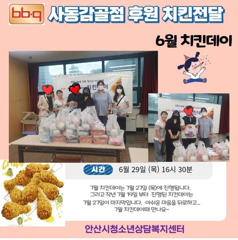 6월 29일 목요일에 치킨데이가 진행됐습니다.