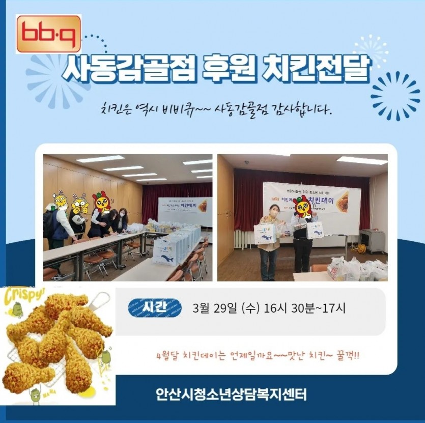 3월 29일 수요일 16시 30분에 치킨데이가 진행됐습니다.