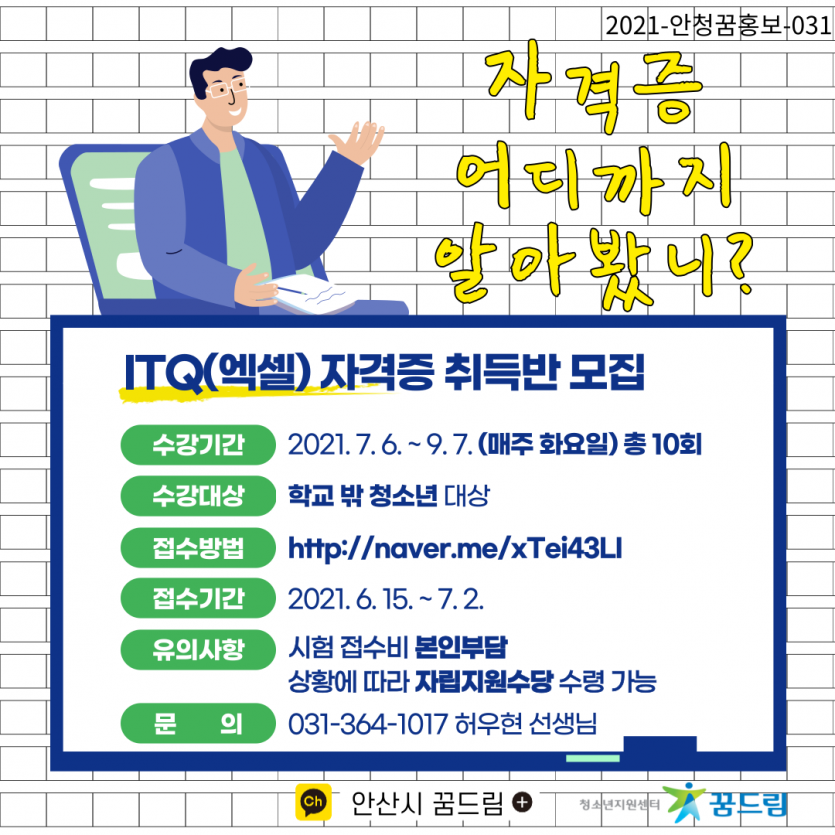 안산시 꿈드림 ITQ(엑셀) 자격증 취득반 모집